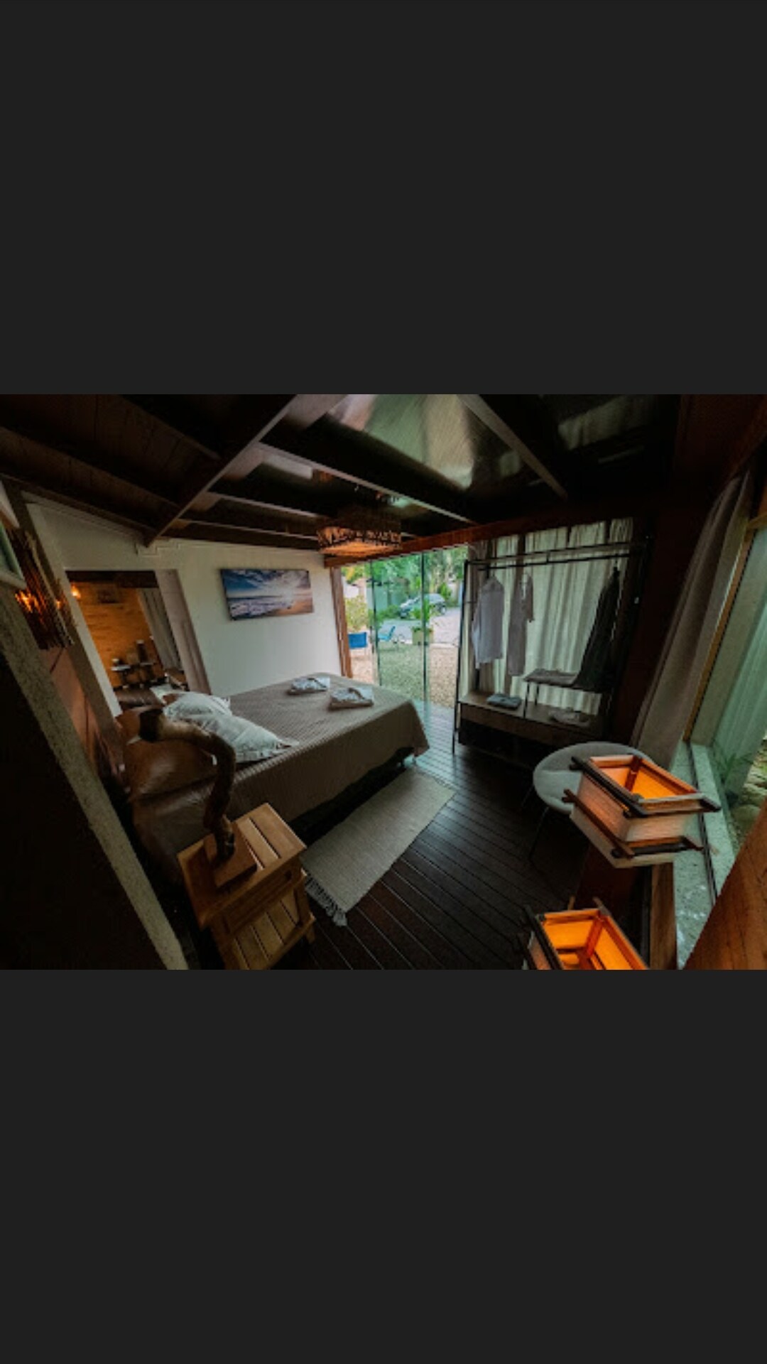 ¡Exclusivo bungalow para parejas dentro de una villa privada con piscina, lago con isla, huerto orgánico y mucho verde a solo 150 metros del mar de Praia de Taquaras!
