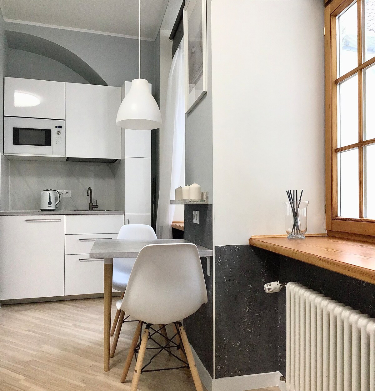 Un pequeño apartamento acogedor en el centro de la Ciudad Vieja, situado en el segundo piso de un edificio histórico renovado. 2 ventanas con cortinas opacas dan a un patio tranquilo. Todo lo necesario para una estancia cómoda para 2 personas: llegada autónoma las 24 horas del día, wifi rápido y TV digital, una cocina con todo el equipamiento necesario, una zona de dormitorio con un sofá cama plegable, un baño con ducha de efecto lluvia, secador de pelo y otras cosas útiles. Somos especialmente cuidadosos con la limpieza del apartamento.