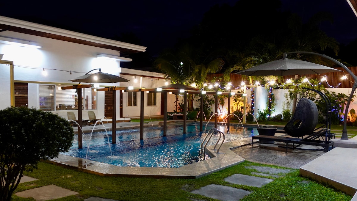 We have a spacious, beautiful, clean, relaxing and spacious, hotel like villa. It has a closed and secured garage. The backyard is a garden. We have a pool and a patio ( shared with other guests). The villa is located just 5 minutes away from Clark. Your family will be close to everything when you stay at this centrally-located place.