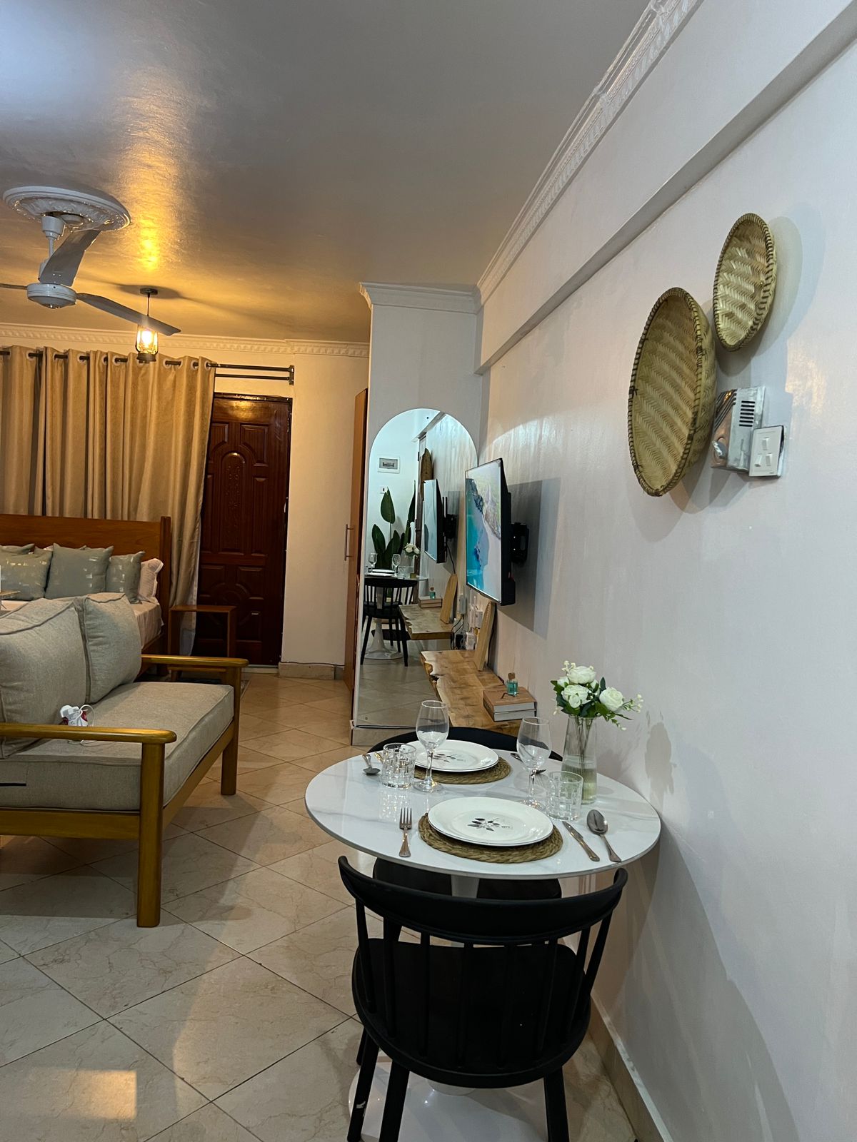 Ideal for short-term stays in the coastal city of Mombasa, Kenya 🇰🇪 The Studio apartment is designed to offer utmost serenity. You can catch a glimpse of the distant sea line through the window with a better view at the roof top. Whether on holiday or work trip or both, its conveniently located and easily accessible with ample parking. The apartment is near Kenya's 🇰🇪 premium beach hotels 🏨 in Shanzu area. Its a walking distance (500meters) to the beach ⛱️ and the blue-sky ocean 🌊