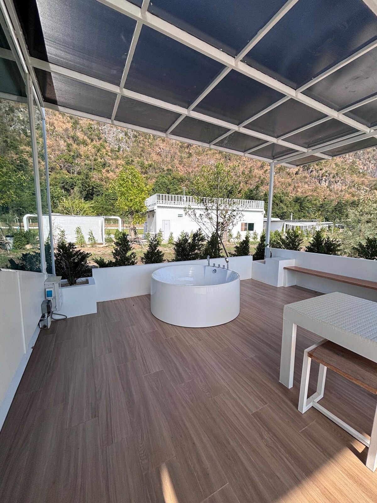 Estación espacial 101, experiencia de glamping. Aspecto moderno futurista con vista panorámica a la montaña. No te lo pierdas mientras estás en Tailandia. En la casa se te proporcionará jacuzzi al aire libre privado, proyector de pantalla grande, inodoro con sensor de destello y mucho más.