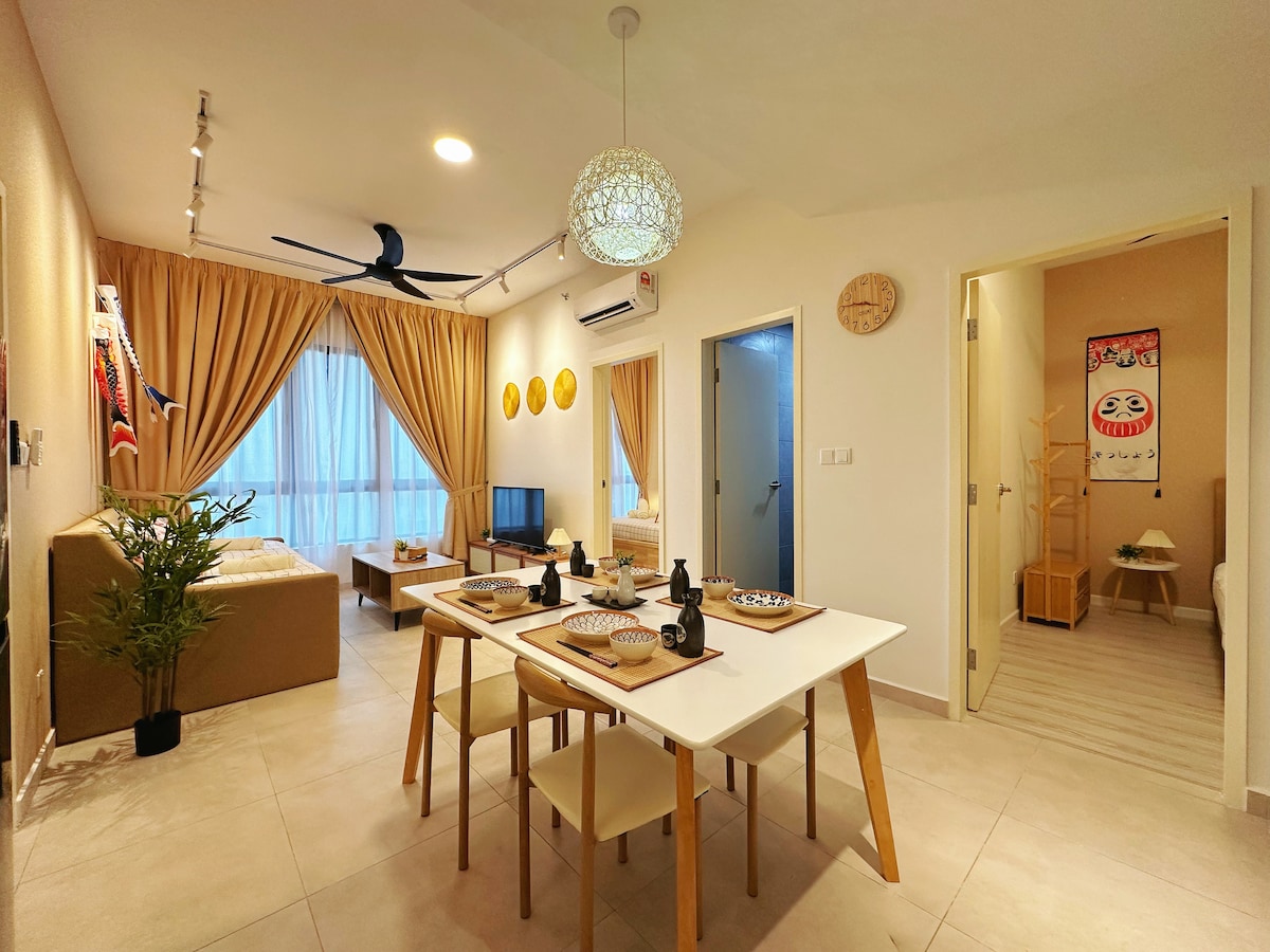 Disfruta de una estancia acogedora y moderna en Meta Residence. Este condominio de 1 dormitorio está diseñado con un cálido espacio de estar, un cómodo sofá y un comedor, perfecto para parejas, huéspedes de negocios o visitas a eventos. 🚶A 1 minuto a pie de Farm in the City y Uptown Equine Park 🚶A 2 minutos a pie del centro deportivo chino, Western Food & Pickleball 🚶A 3 minutos a pie de la estación MRT Putra Permai - Línea 2 A 🚗 15 minutos en auto de IOI City Putrajaya, Pavilion Bukit Jalil