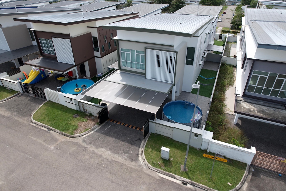 *Nuevo Reno* Piscina con tobogán acuático y barbacoa en Desaru
