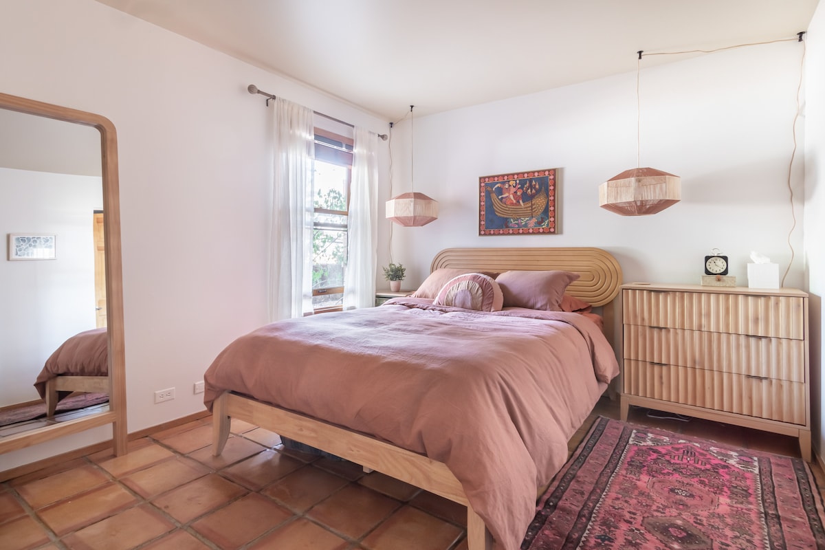 Our private-entry casita is nestled in the pines, boasts a canyon view, and is only a 5 minute drive to LANL, the Fuller Art Lodge, and the historic district. You’ll enjoy a luxurious queen bed, spa-like bath, and fully equipped kitchenette (stocked with treats!). Clerestory windows keep the space light and bright. Set back on the lot with a private patio and driveway. Easy access to Bandelier, Pajarito Ski Mountain, and downtown via shuttle or car. Let our casita be your home away from home!