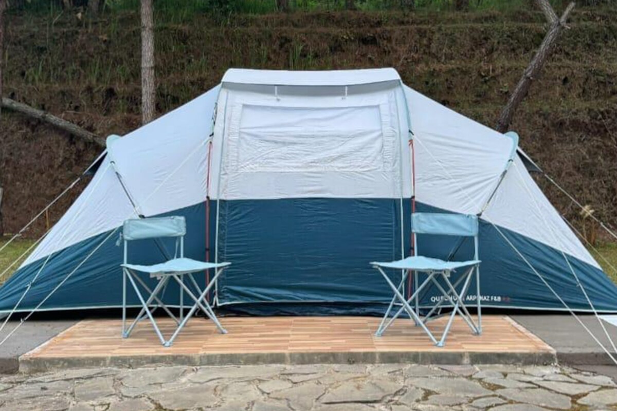 ¡Vuelve a conectar con la naturaleza en este inolvidable lugar de glamping! ¡El sitio de glamping más nuevo en Bandung, apto para mascotas y perfecto para fotos con amigos y familiares! Lejos del ajetreo y el bullicio, pero aún cerca de la ciudad. ¡A solo 10 minutos de la Terminal Dago y a 20 minutos del centro de Lembang! Hay 6 tiendas de campaña disponibles con una capacidad total de 14 personas. Precios especiales para reservar una zona entera. ¡Quédate con nosotros y crea recuerdos inolvidables!