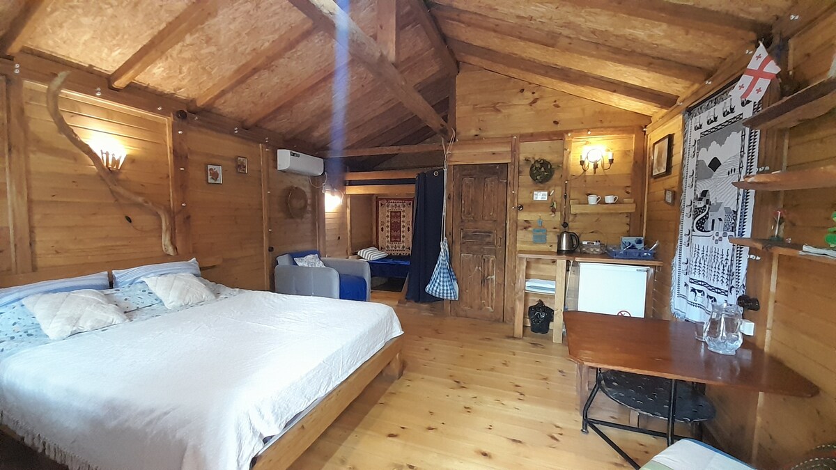Descubre una vida única en una casa de campo de madera en la tranquila Georgia rural. Se encuentra en medio de un huerto en la propiedad de la casa de huéspedes. Esto es para aquellos que aprecian la relajación tranquila y limpia y un regreso a un estilo de vida sencillo y básico. La casa es respetuosa con el medio ambiente y solo se utilizan productos naturales, materiales locales y materia prima reciclada. Casa en medio de un huerto. 26 metros cuadrados con su propia terraza y jardín. Preparamos desayunos previa solicitud.