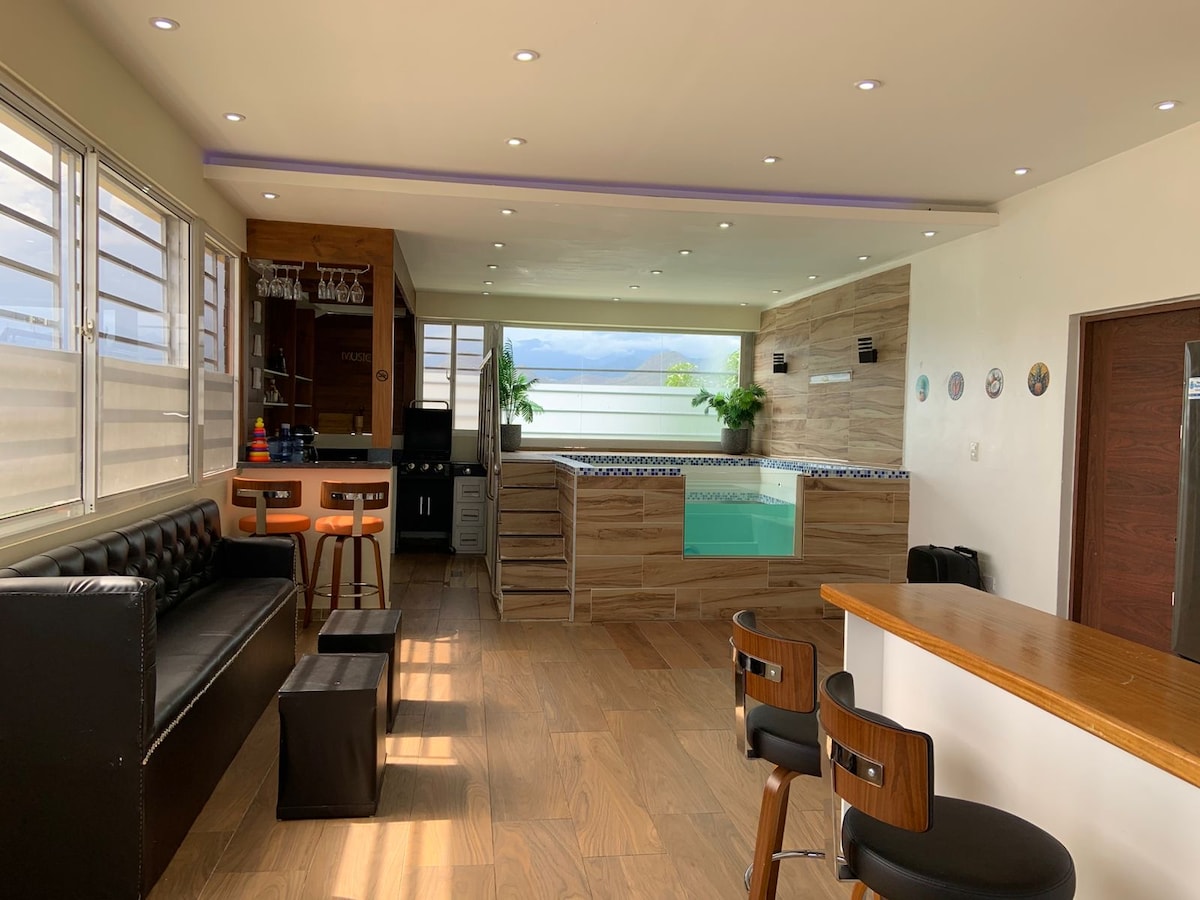 Apartamento entero en el cuarto piso 2 BR / 1.5 Baño con jacuzzi privado. Mesa de billar 🎱 Lugar para visitar: Parque Marcos A. Cabral 5min Los almendros vip 8min Dunas of bani 34min Aeropuerto internacional Las americas 1 hora y 26 minutos Panadería Santia panaderia a 3 minutos Real súper fria a 4 minutos IG: lianas_rooftop