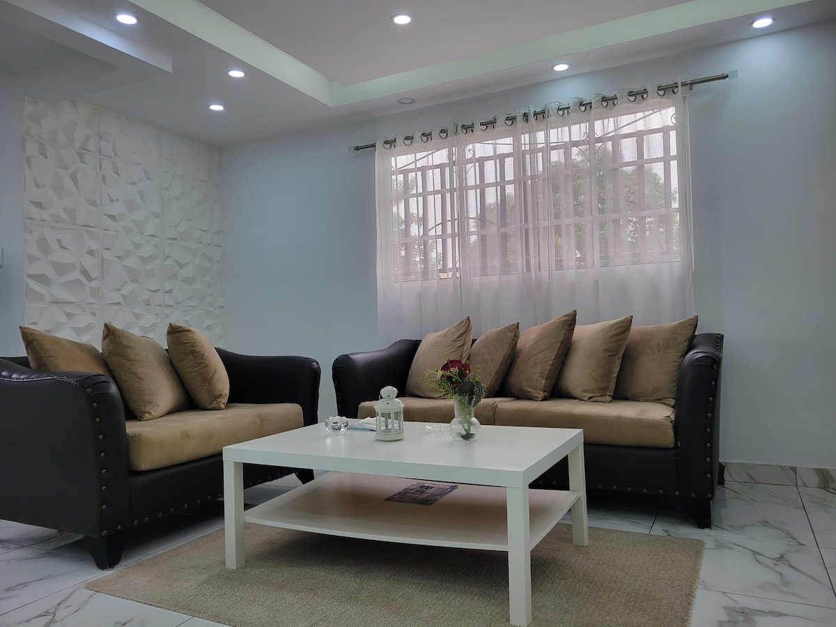 Brand new, very clean and gorgeous apartment located in Bani (Peravia Province) close to the center of the city. This charming living space has everything to make you feel at home: 3 rooms, Queen beds , AC , TV, 2 Bathrooms, washer & dryer, generator, and well equipped kitchen. Pool is available for guests We provide , FREE - Coffee -Wifi -Prívate Parking -Board Games -Comfy Beds / Pillow - Toiletries and soaps -Smart Tv & More ( Pool Hours ) Friday to Sunday 9:00 Am 6:00 PM