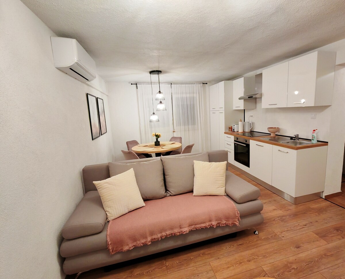 Bienvenido a nuestro nuevo y muy acogedor estudio de 33 metros cuadrados en un edificio nuevo con balcón, diseñado para 2 personas y con una cama doble. Gratis: wifi estable, TV Android de 32 pulgadas, calefacción central urbana, aire acondicionado, estacionamiento privado en el garaje del edificio. El departamento está ubicado en un nuevo pueblo en el distrito de Ferenščica, a solo 4 km del centro de la ciudad y a solo 2 km de la estación principal de autobuses. El mercado Konzum y la farmacia Bipa están a 100 metros de distancia. La parada del tranvía está a 5 minutos a pie.