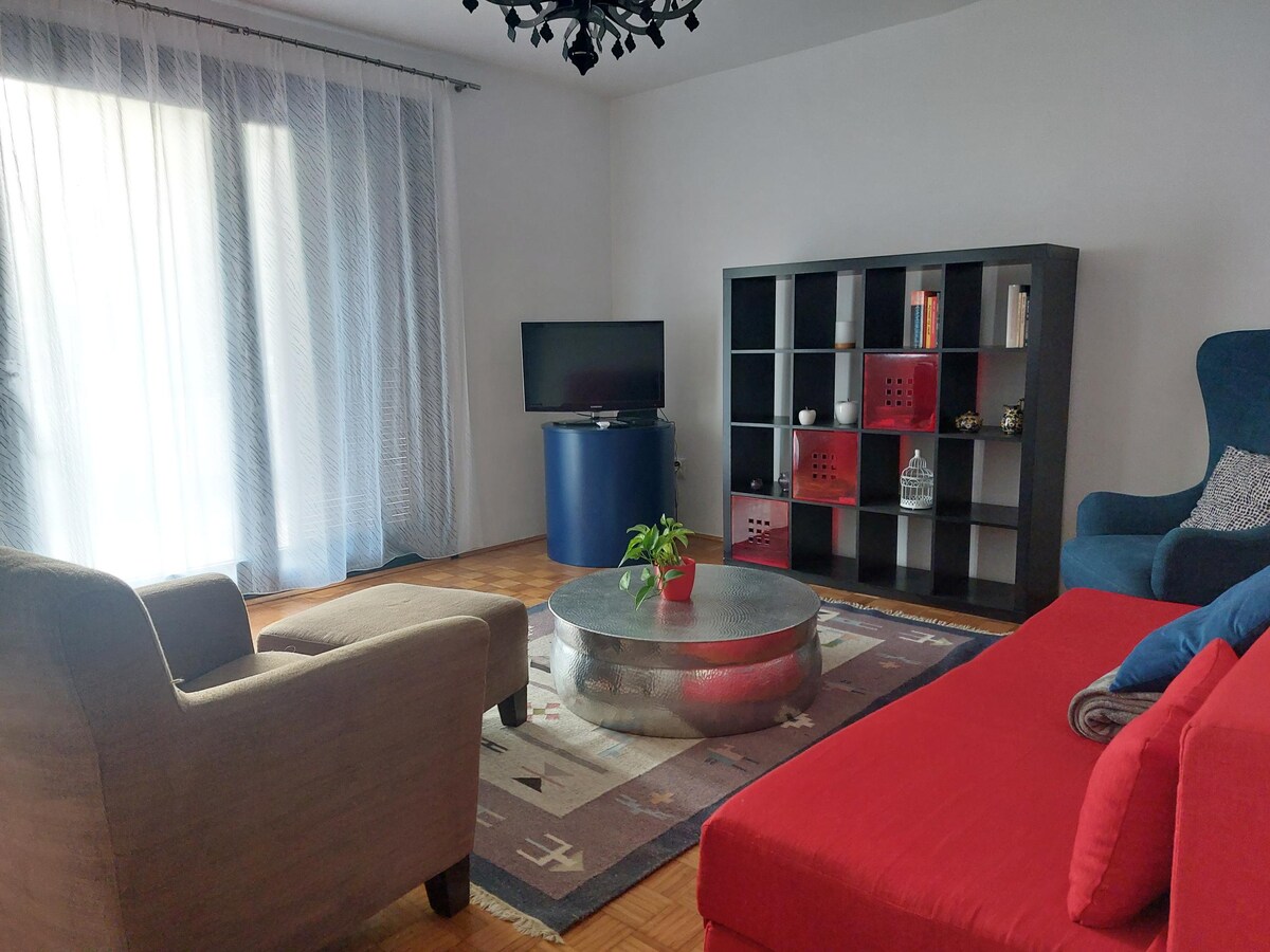 Nuestra casa está situada en una zona familiar tranquila justo al lado de la ciudad de Pula, famosa por su antiguo anfiteatro romano. Para ser precisos, vivimos entre el centro de la ciudad y las playas recién hechas de Hidrobaza, donde puedes disfrutar con tus hijos, ya que ofrece mucho, desde aparcamiento gratuito hasta bares de playa, terrenos deportivos, etc. Si tienes bicicleta o coche, todo está a tu alcance. Vivimos a 1 milla de la primera playa. Líneas de autobús a 150 m, pequeña tienda de comestibles a 150 m, restaurantes y pizzería a 400 m.