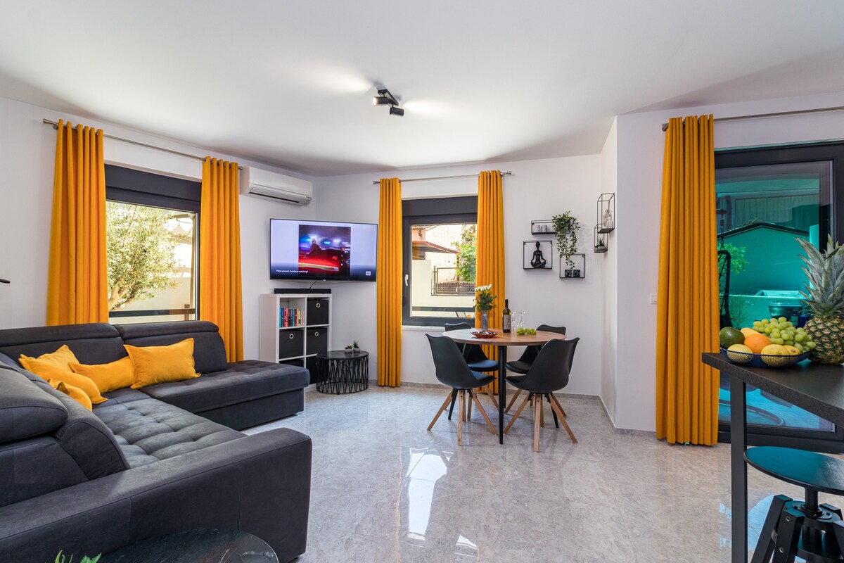 Bienvenido a Apartment Urbanis, tu elegante y acogedora escapada en el corazón de Pula. Este moderno refugio de dos dormitorios está diseñado para la comodidad, para que puedas instalarte y sentirte como en casa desde el momento en que llegues. Disfruta de la comodidad de un estacionamiento privado y seguro gratuito, un hallazgo raro en el centro de la ciudad. Sal y estarás a solo unos minutos del vibrante mercado local de Pula, encantadores cafés y atracciones imperdibles, todo lo que necesitas para una estancia relajada e inolvidable.