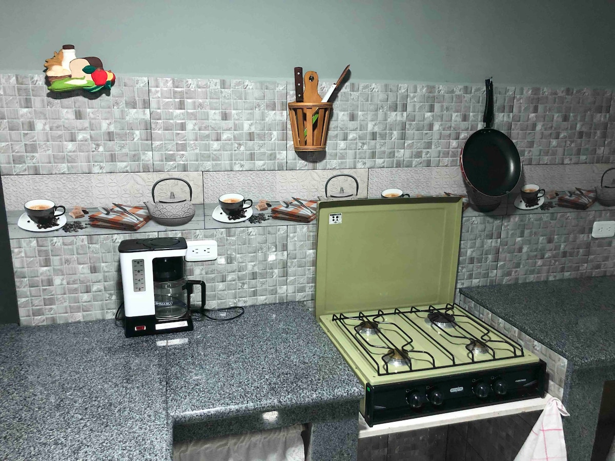 Departamento vacacional amoblado con vista a la cascada de la virgen y a la cuidad, ideal para tomarte un descanso y relájarte en un espacio tranquilo, acogedor y cómodo que merece tu familia. NOTA IMPORTANTE: Si estás preocupado porque los apagones de luz van arruinar tus vacaciones, no te preocupes en nuestros Airbnb dispones de luz las 24 horas durante los 7 días de la semana.