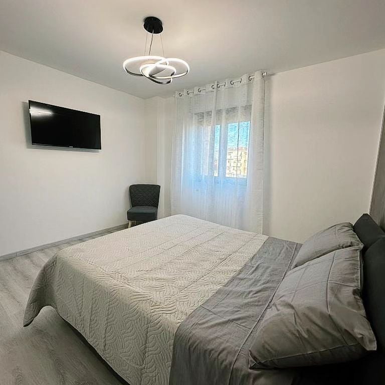 appartamento confortevole, silenzioso, composto da salotto con divano con due letti singoli, una camera matrimoniale con letto matrimoniale 160 x 205 e letto singolo, cucina con frigo, congelatore, microonde, macchina caffè lavazza, bollitore, tostapane. Possibilità culla. Animali domestici ammessi. Lavatrice e asciugacapelli. Possibilità di navetta aeroporto e/o stazione. A fianco all'edificio è disponibile un ampio e comodo parcheggio gratuito e pubblico. supermercato, bar e ristoranti.