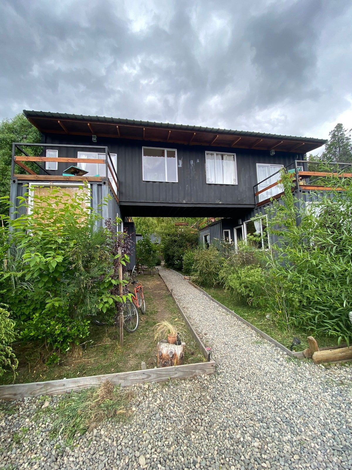 Casita reciclada de contenedor marítimo 5 cuadras de el centro y del súper cafés bares restaurantes y la feria artesanal. Sobre el pie de la montaña con un bosque nativo en el patio trasero desde donde se puede acceder al cerro amigo en un hike de 20 minutos . Las casitas están completamente equipadas y hay estacionamiento disponible en la entrada . El Barrio cuenta con un portón de segurigad y la calle es sin salida . Es muy tranquilo y a pasos del centro . ❤️🌳🌍