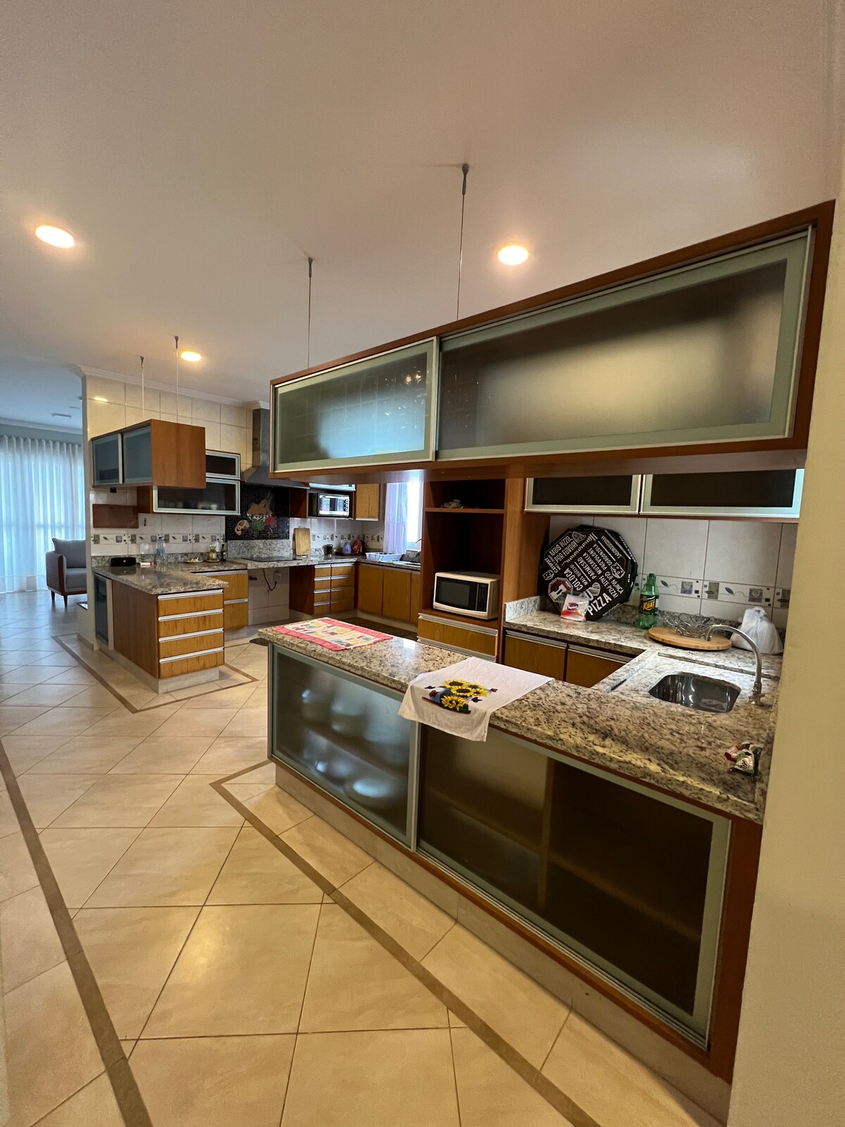 Casa de una sola planta, cómoda y completa, en una tranquila calle residencial, a 750 metros de la playa y a unos 15 km de Beto Carrero. Ideal para familias con mascotas. Hay 3 dormitorios grandes (1 suite), 2 baños, aire acondicionado en todas las habitaciones, chimenea y parrilla de carbón. Cocina completa, lavandería con lavadora y secadora, filtro de agua fría, sofá cama, PlayStation 4, cunas, bañera para niños y garaje para hasta 3 autos. Ofrecemos ropa de cama, toallas de baño y jabones. Mercado con panadería en la calle.