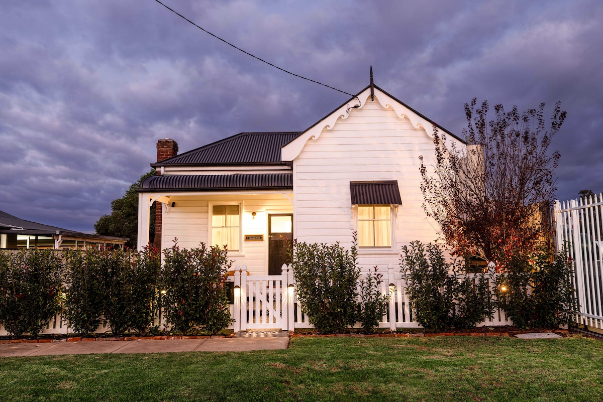 Relájate en una parte de la historia de Uralla. King 's Cottage, alrededor de 1886, ha sido restaurada y renovada con mucho mimo, ofreciendo a los huéspedes el encanto de antaño, junto con las comodidades modernas. Cada dormitorio cuenta con una chimenea de llama de gas de época, así como el baño donde puedes recostarte en la bañera mirando el fuego mientras te relajas. La casa también cuenta con calefacción central de gas en todas partes y un amplio invernadero/comedor y sala de estar tiene su propia estufa de leña dedicada, para esas noches acogedoras.