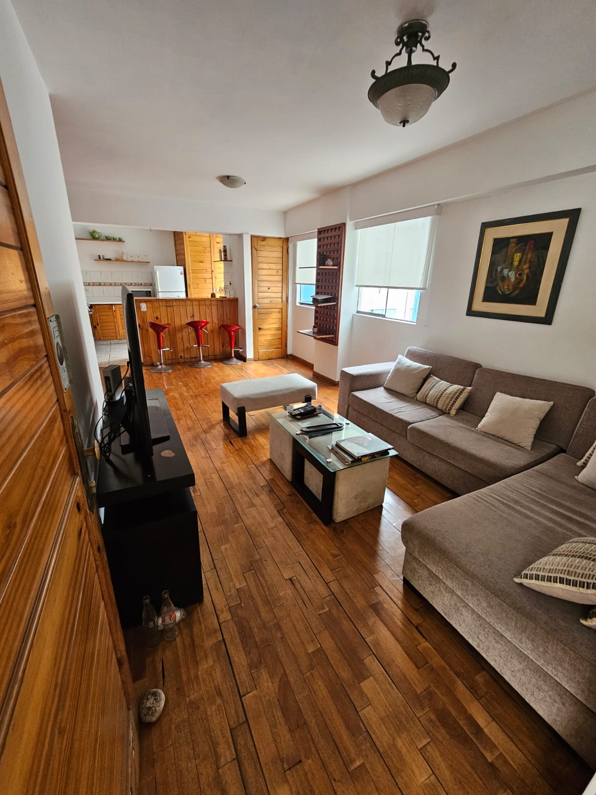 Se alquila departamento ubicado en la zona turística de Miraflores. 4to piso sin ascensor. Amplia habitación, 1 cama Queen Size. Smart TV, cable, wifi 600 Mbt. Sala, comedor y cocina equipada; balcón con vista a la calle, lavandería con lavadora y secadora. Cerca del océano pacífico, parques, centro comercial, Larcomar, Marriot Hotel, a los mejores restaurantes. Ciclovía para montar bicicleta, veredas para caminar e ir a la playa por la bajada Balta.