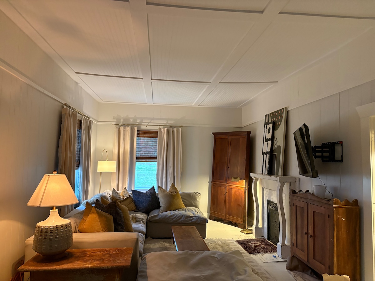 En este alojamiento se respira tranquilidad: ¡relájate con toda la familia! Explora el Parque Nacional de Mammoth Cave, navega en kayak por el río Green o camina por Dinoworld y luego relájate en el jacuzzi mientras los niños o el cachorro juegan en el patio trasero vallado. La chimenea es un lugar perfecto para los s'mores. Disfruta compartiendo una comida en la cocina totalmente equipada o dirígete calle abajo y compra pizza y helado en las tiendas de propiedad local en Cave City. Nos encanta crear espacios para que crees recuerdos. @mammothcavecottage