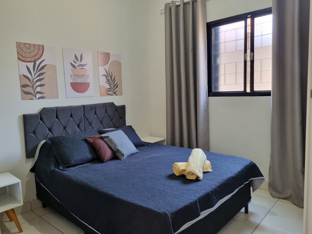 ¡Bienvenido a nuestro acogedor apartamento en Barretos, SP! Ideal para su estancia, ofrece 2 dormitorios con 1 cama de matrimonio en uno de ellos y en el otro 2 camas individuales, un sofá cama en la sala, un televisor para relajarse, cocina completa para preparar sus comidas, baño, gimnasio y piscina. Situado cerca del mercado, farmacia y gasolineras. Distancia a: Parque do peão - 9 km Parque acuático Country - 7 km Hospital do Amor - 6 km AME - 7,5 km Centro comercial - 5 km