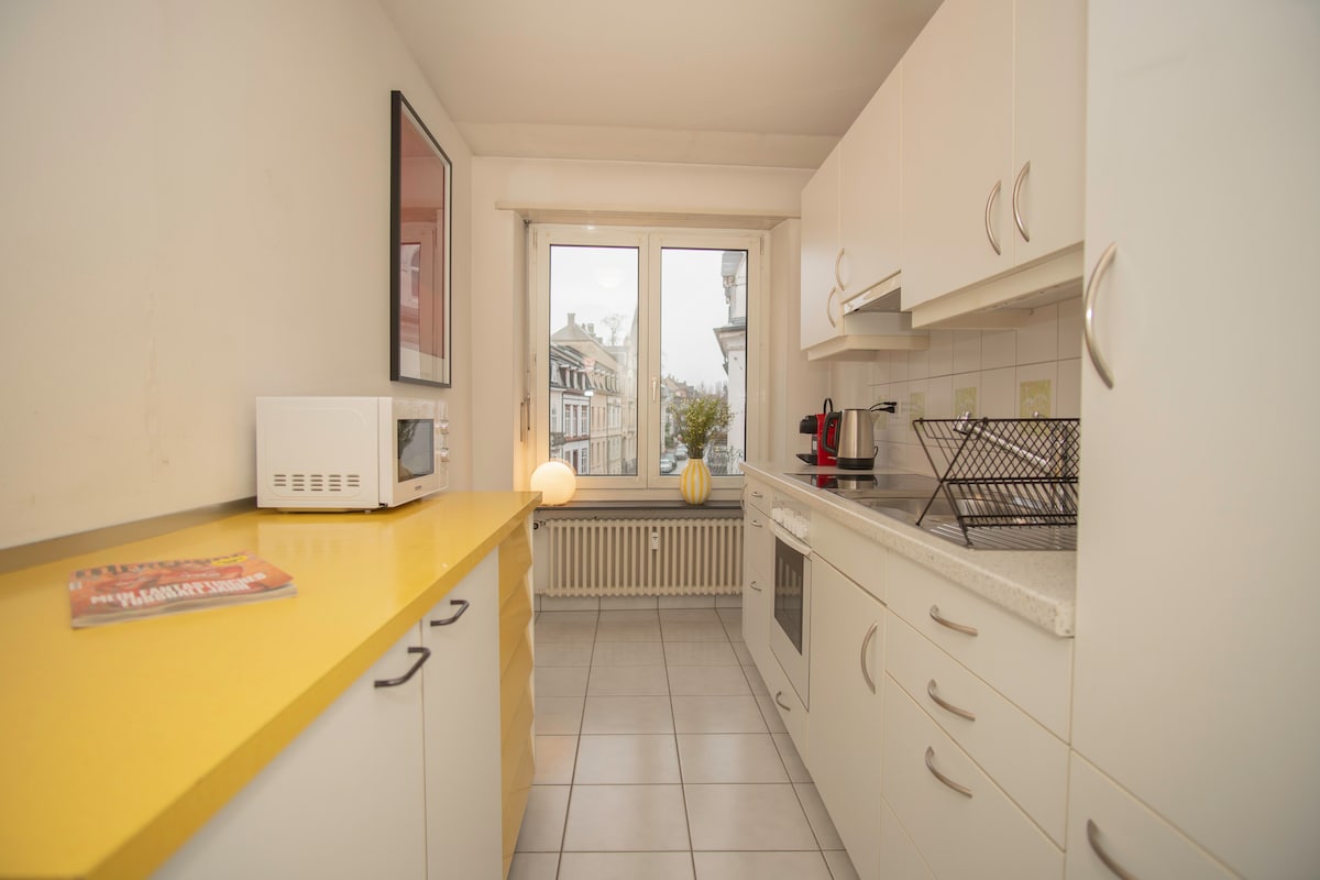 Apartamento céntrico de 2 dormitorios en el centro de la ciudad con BaselCard gratuita. El apartamento del segundo piso (con ascensor) viene totalmente amueblado con una cocina bien equipada. El centro de la ciudad está a poca distancia a pie. Todos los huéspedes reciben una BaselCard complementaria con acceso gratuito al transporte público. Conexiones directas al aeropuerto y a la estación de tren.