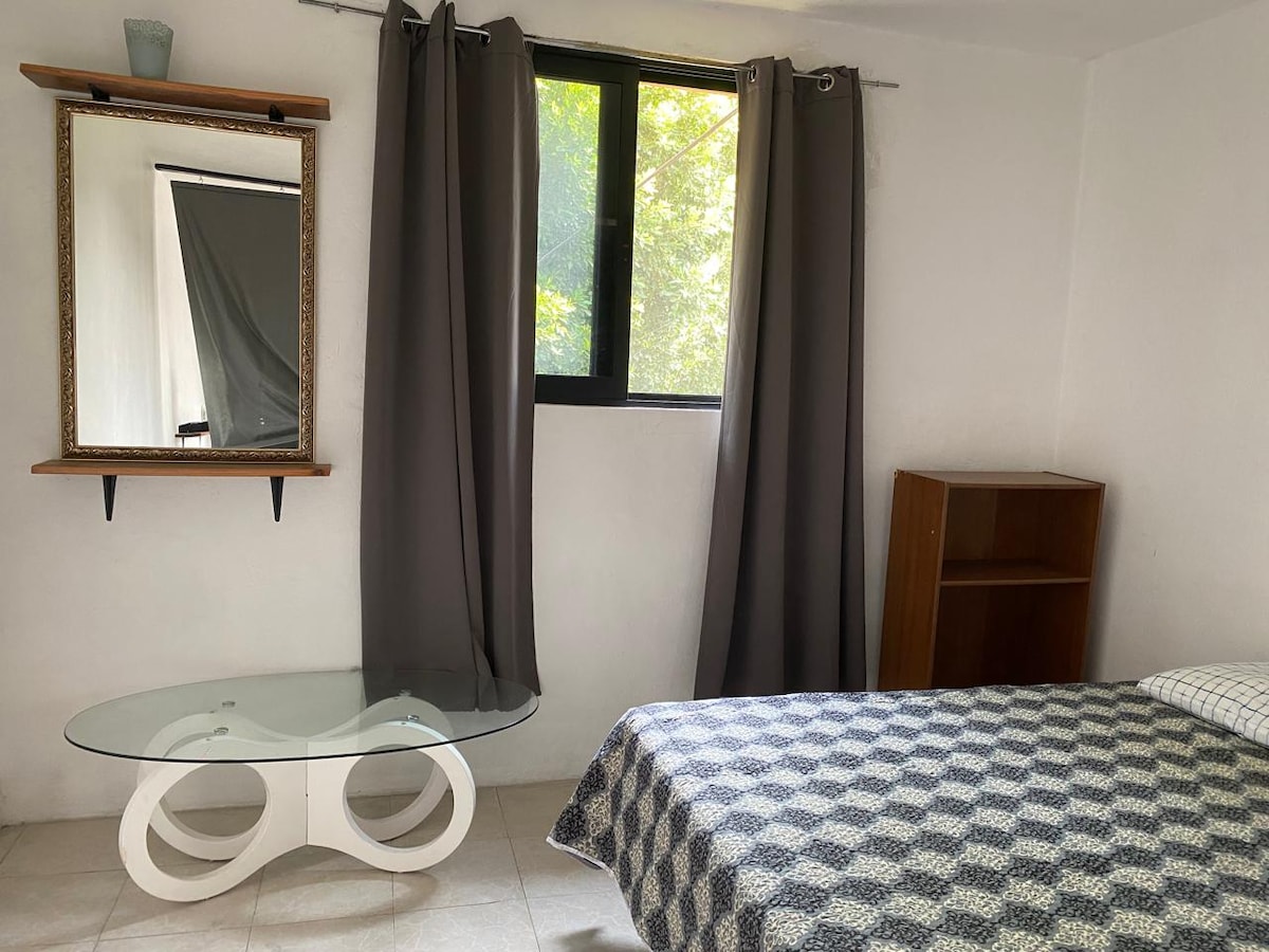 Lindo departamento en el corazón de Coyoacán, muy iluminado, completamente equipado, cuenta con 1 recámara con 2 camas matrimoniales, 1 sofá-cama matrimonial. Este departamento es perfecto para 3 adultos y 1 menor, o 2 adultos y 2 menores. Está a 3 calles del museo Frida Kahlo, a media calle del museo León Trotski y a 6 cuadras del Zócalo de Coyoacán.