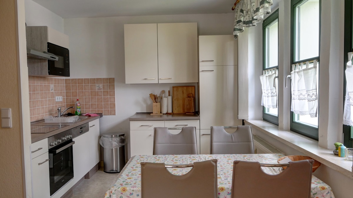 Un apartamento cómodo y familiar con cocina, dormitorio y ducha y aseo le espera. El departamento tiene capacidad para 2 personas. Además, hay 2 opciones de camas supletorias. Disponemos de cuna de viaje para bebés. Las habitaciones están pintadas con colores naturales y los pisos de madera están tratados con cera natural y, por lo tanto, son particularmente adecuados para personas alérgicas. Se admiten mascotas previa solicitud. Un gran balcón lo invita a quedarse.