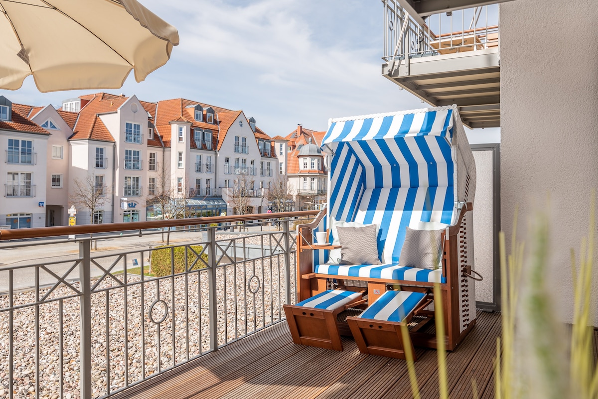 Hermoso y acogedor apartamento en la residencia del puerto deportivo, ático con balcón al mar Báltico y en parte Vista al mar en Kühlungsborn Ost. Aproximadamente 30 m² para 2 personas. Wifi, estacionamiento gratuito, baño con ducha y ventana, así como una pequeña cocina, completan la oferta. Maritim amueblado, el apartamento ofrece todo lo necesario para unas agradables vacaciones en el mar Báltico. Las lavadoras y secadoras de monedas están disponibles para los huéspedes en el sótano. Edeka está a la vuelta. A 150 metros de la playa