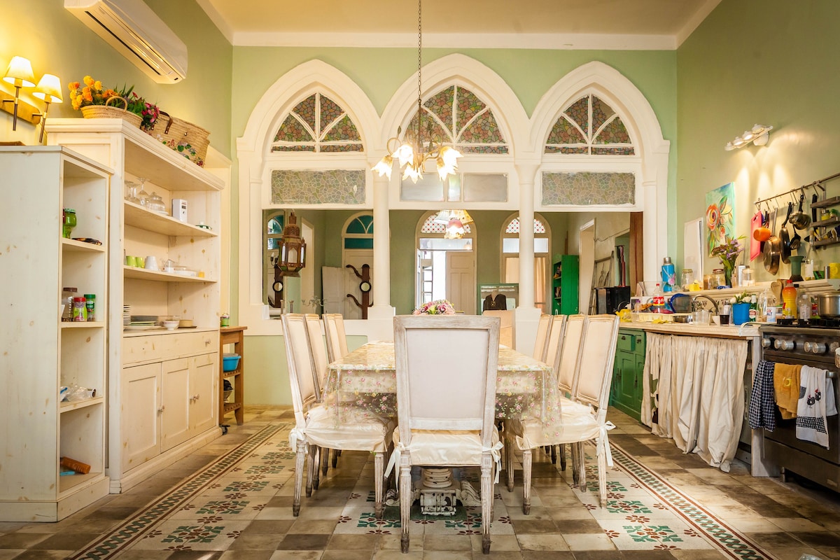 Welcome to Vollek House — a home where every corner tells a story. Set in a historic stone building from the early 20th century, just a 5-minute walk from the magnificent Baha'i Gardens, this restored apartment retains its original charm, seamlessly blending vintage character with modern comforts. Featuring two spacious bedrooms, a cozy living room, a fully equipped kitchen, a sunlit balcony, and handpicked mid-century décor, Vollek House offers a truly memorable stay in the heart of Haifa.