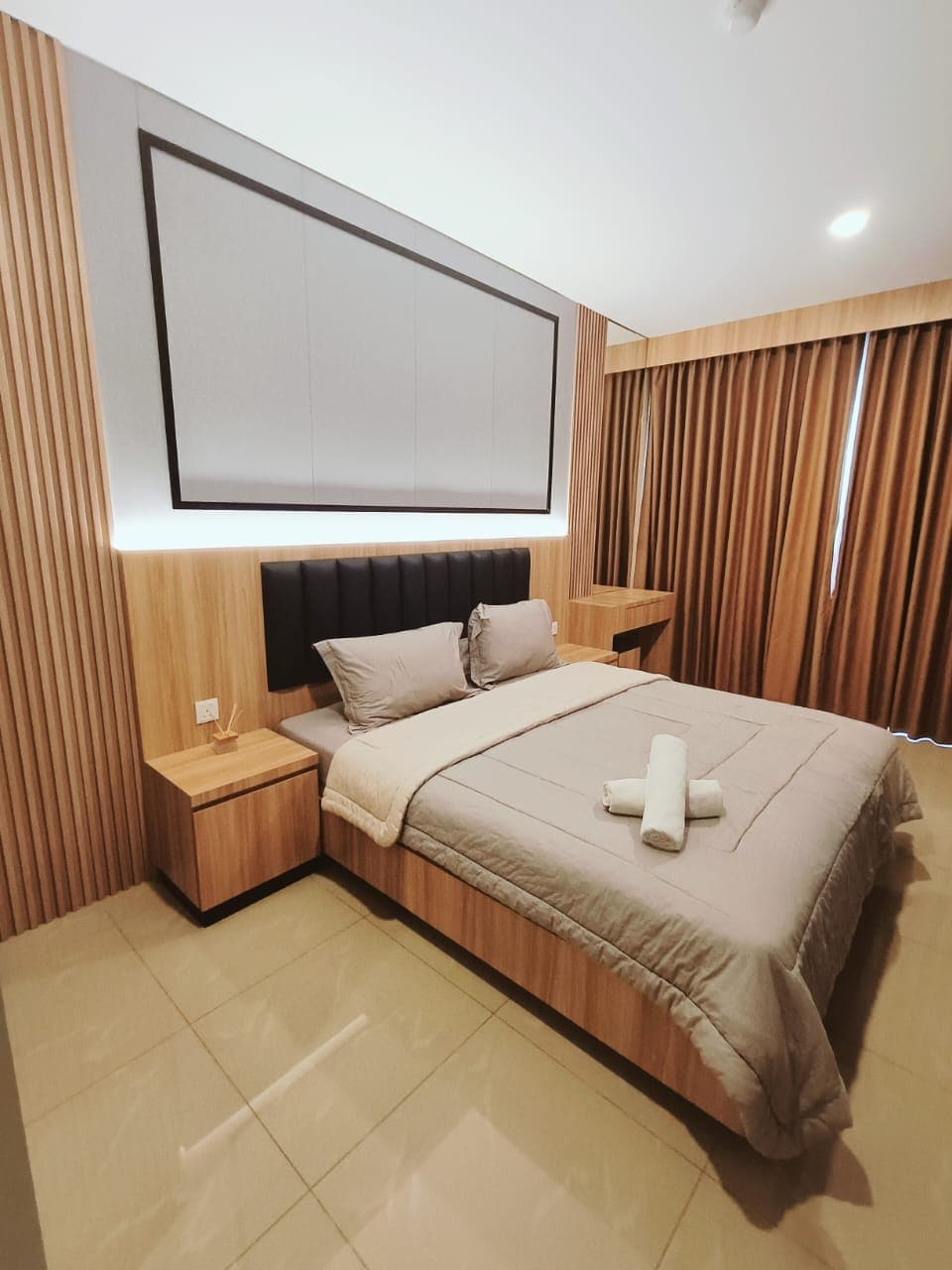 A brand new apartment Centrally Located in the city of Batam Island Fully Furnished 2BR apartment 2 queen beds 1 bathroom 1 spacious Living room and kitchen with Pool and city view At the corner and high floor This Contemporary 2BR Apartment is designed with comfort and warm home feeling with nice furniture For Leisure or Business retreats Location : - Grand Batam Mall 5 min - Nagoya Hill Mall 10min - Harbour Bay Ferry 15min - Batam Centre 15min - BCS Mall 5min Swimming Pool Gym Parking Free