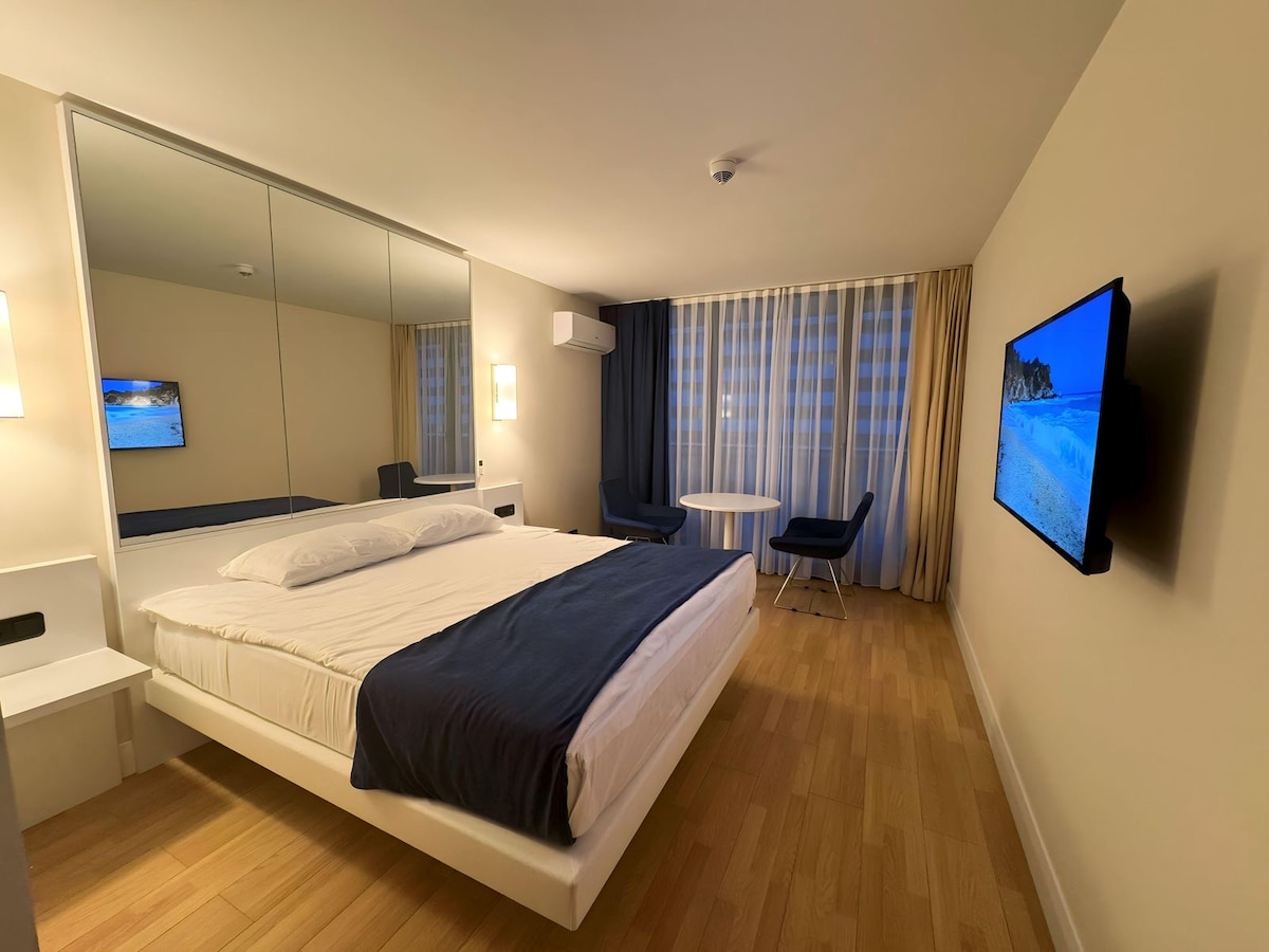 Disfruta de la comodidad de lujo en nuestra espaciosa suite ejecutiva, con una ubicación ideal a solo 250 metros de la playa. Relájate en una lujosa cama tamaño king y disfruta de toques modernos como un televisor inteligente, wifi de alta velocidad, baño privado y balcón. Mejora tu estancia con acceso a instalaciones premium, como una piscina de temporada, spa, gimnasio y sauna, disponibles como parte de paquetes selectos o por una tarifa adicional. Se proporciona té/café de cortesía y servicios básicos para garantizar una estancia refinada y relajante.