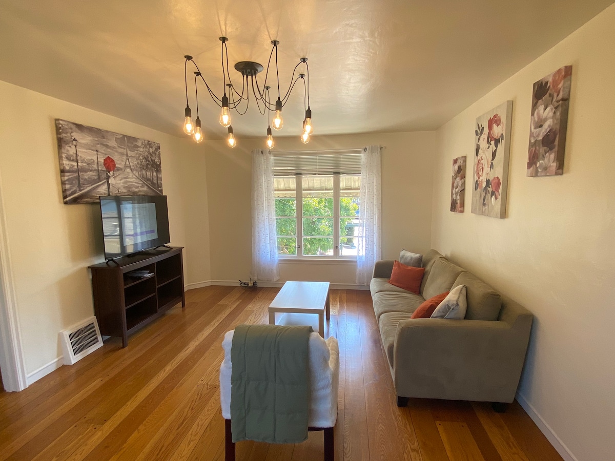 Amplia suite de invitados de 500 pies cuadrados, a cinco pasos de la entrada privada del jardín, dentro de nuestra hermosa colonial holandesa de 1904 en una calle tranquila en la encantadora Alameda. El espacio tiene techos estándar de 8 pies, mucha luz natural con 6 ventanas de tamaño completo y un espacio de patio en nuestro encantador jardín. Las comodidades incluyen TV Roku, electrodomésticos de cocina pequeña, pero no una cocina completa. La cama tamaño queen y el sofá cama de tamaño completo pueden alojar a una familia de 4 personas. A poca distancia a pie del transporte público, restaurantes, tiendas y parques.