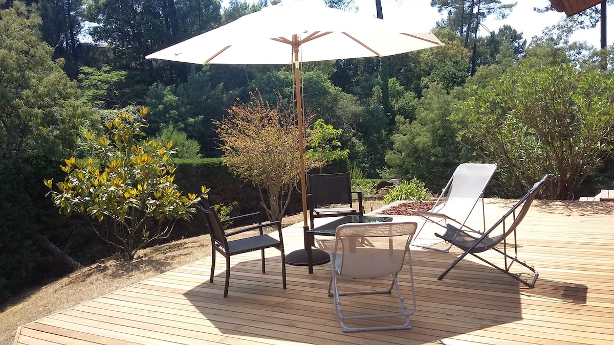 Escape de la naturaleza entre el mar y el bosque – Un remanso de paz en las Landas Disfrute de un paréntesis de serenidad en esta gran casa de madera, bañada en luz. Idealmente situada a solo 200 metros de la playa y a 300 metros del bosque, permite disfrutar plenamente de la naturaleza, entre paseos por los carriles bici y la relajación en el corazón del exótico jardín exótico. A 2 pasos del País Vasco, esta casa es perfecta para familias y grupos que buscan amabilidad y grandes espacios.