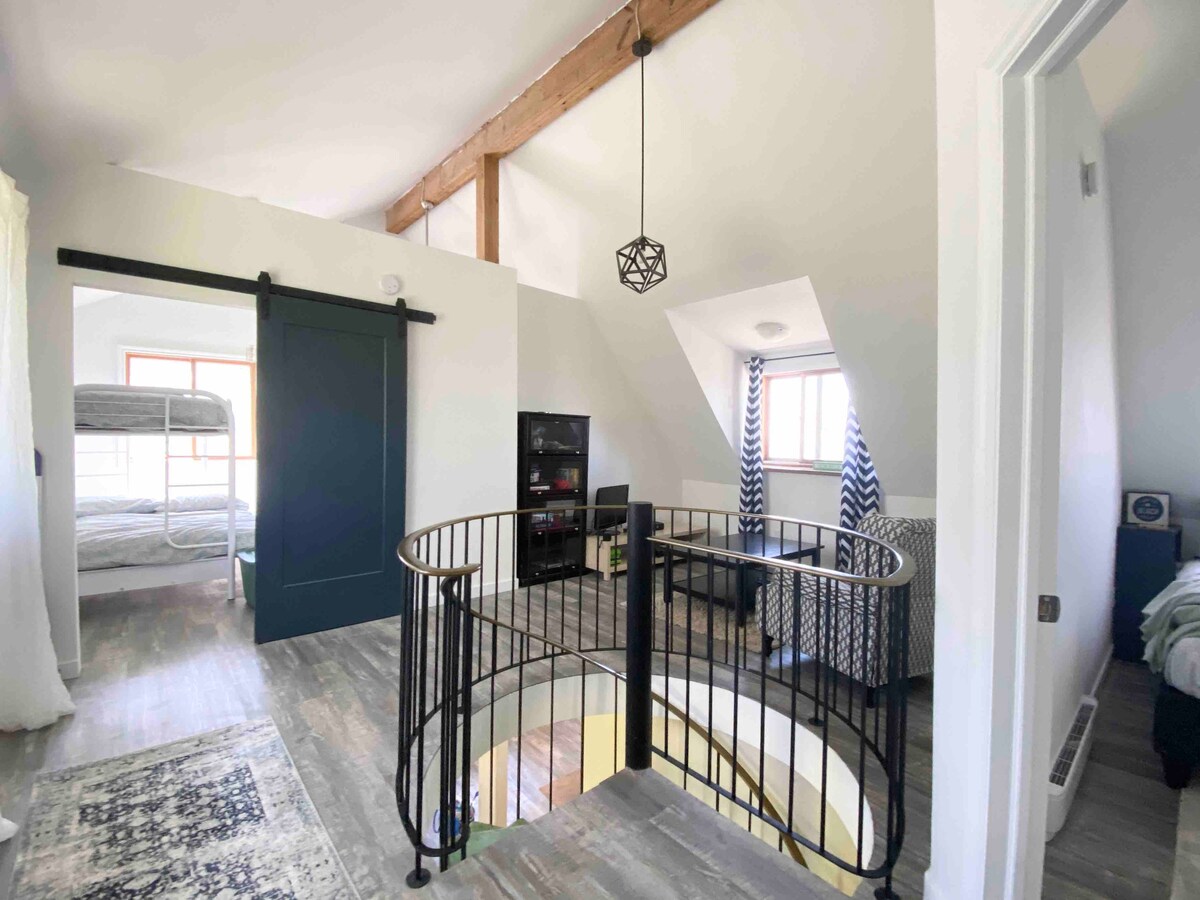 Esta suite con entrada privada está unida a nuestra casa principal, donde vive la familia anfitriona. Está situada en una zona tranquila de la ciudad, escondida entre los árboles, con un río y un sendero al otro lado de la calle. Sería perfecta si viajas aquí por trabajo o simplemente necesitas una escapada relajante. Esta suite de invitados fue una vez un gallinero, ahora convertido en una moderna casa de estilo de mediados de siglo que hemos llamado cariñosamente la Casa Hobbit debido a sus techos bajos.