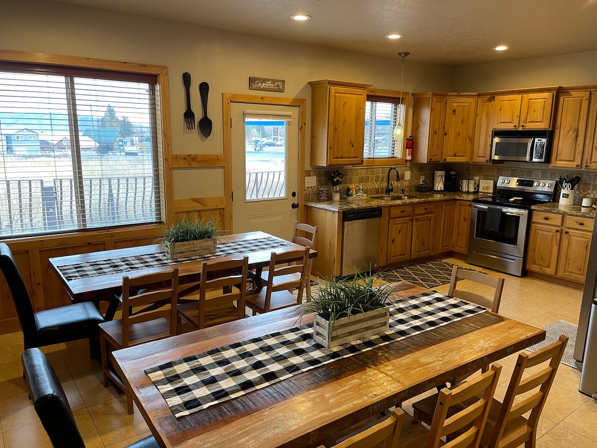 Todo el grupo disfrutará de fácil acceso a todo desde este lugar céntrico: -13 millas a la estación de esquí. - A través de la calle de Mikes Market (la tienda de comestibles más nueva y más grande de los alrededores). - Abajo la calle de la piscina y el spa de la ciudad (pequeña tarifa) - Abajo la calle de las carreras de go-cart. - Abajo la ciudad a restaurantes, tiendas, famosos sacude un paseo a pie o en bicicleta. - A una cuadra del puerto deportivo principal. - Salida de la casa a varios vehículos todoterreno, motos de nieve, senderos para bicicletas de montaña y carriles bici para otras bicicletas.
