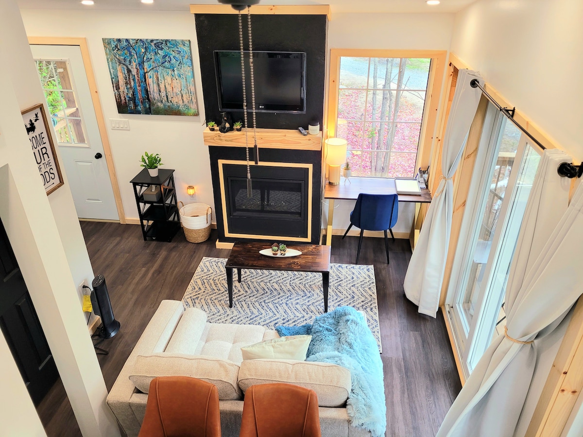 Nuestro alojamiento es perfecto para dos adultos y dos niños (estilo Tiny home). Convenientemente ubicado a poca distancia de una playa y senderos. Esta ubicación es el lugar perfecto para disfrutar de actividades para cualquier temporada. Esta casa loft de cuatro estaciones con sauna de cedro, se puede disfrutar durante todo el año. Nota: 🛶 Necesitas un auto para los kayaks 🪜El loft tiene una escalera y el techo no es demasiado alto. Propiedad 🌲🌲forestal no frente a🏖 la playa, pero sí accesible a pie. 🐻Ten en cuenta