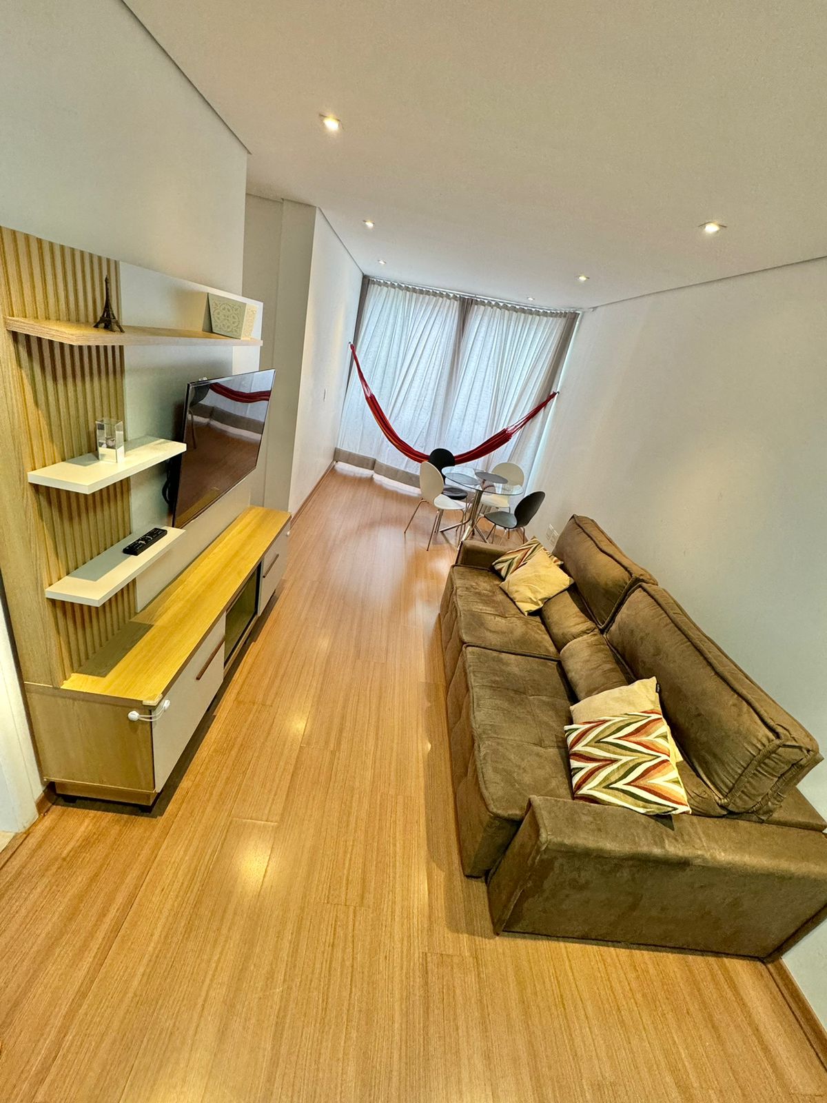 Apartamento moderno, 32m2, ubicado en el mejor punto de Sion. Cocina práctica con minibar, cocina, TV (canales abiertos/Netflix), aire acondicionado, secador de pelo, hervidor eléctrico e internet. Zona Sur, junto a la Plaza JK y la Avenida Bandeirantes, frente a un supermercado. Azotea del edificio con gimnasio, sauna, piscina, sala de estar y cocina comunitaria (agua, máquina de hielo). Limpieza a pedido disponible. Edificio seguro con conserjería las 24 horas. *No hay garaje incluido.