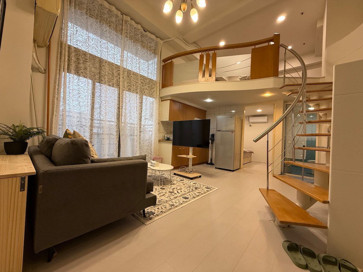 C [Casa llena de romance] 2 a 7 personas.Gran espacio. Vista nocturna desde los edificios altos. Frente a SOGO. Cerca de Caowu Dao.Museo de la Ciencia y la Tecnología. Universidad de Taihoku.Mercado nocturno de Feng Chia