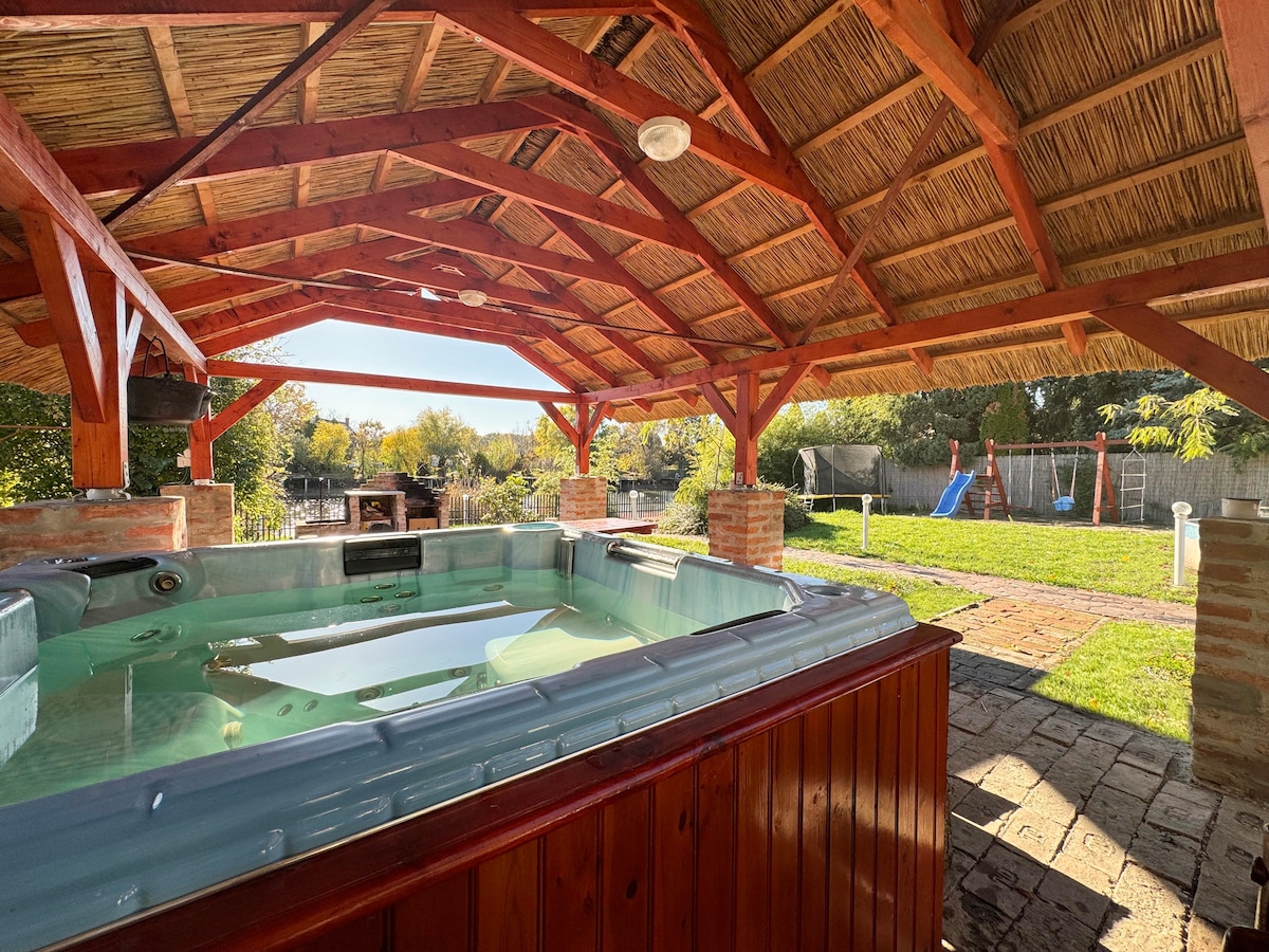 ¡Da la bienvenida a nuestra casa frente al mar en el mágico Békésszentandrás! La propiedad se encuentra junto al Szarvas Arboretum, en un entorno tranquilo e idílico. Y el paseo marítimo privado vallado será todo tuyo para tener momentos tranquilos con familiares o amigos.