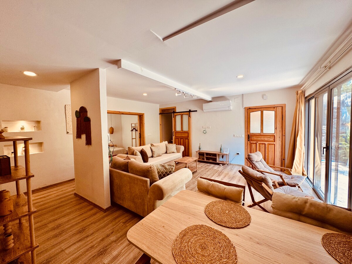 Nuestra villa independiente con piscina está lista con una vista magnífica. Tiene dos habitaciones y un total de 4 camas. Cada habitación tiene aire acondicionado. Hay una barbacoa con iluminación en el jardín. Lavavajillas, horno, televisión, lavadora. Hay una plancha y un secador de pelo. Vacaciones en un ambiente extraordinario, ya que tiene techos altos. Elíjanos si desea una habitación con techo alto o una habitación con techos altos. Todos los encuentros y la salida de la villa serán hechos personalmente por mí. Nos vemos pronto.