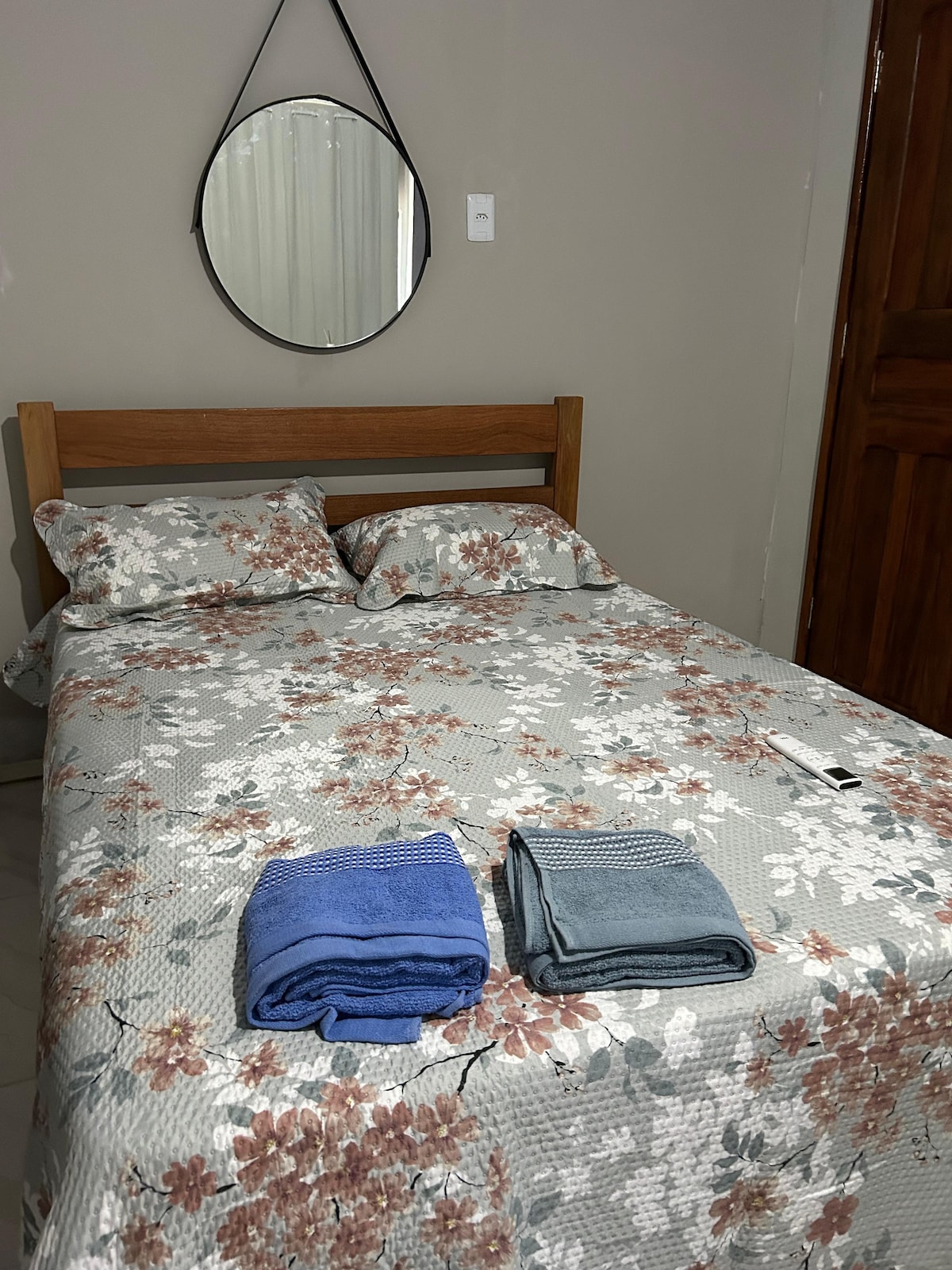 Casa aconchegante na Pedreira. Melhor localização para COP30. Fácil acesso a mercados, restaurantes, bancos, farmácias, padarias, etc. Garagem coberta para dois carros; 01 quarto climatizado com cama de casal e uma bicama (cabendo até 4 pessoas) e armário; 01 banheiro com água quente; Sala de estar e jantar com sofá cama; espaço com mesa para trabalho; Cantinho do café; Jardim com rede para relaxar. Frigobar, cafeteira, sanduicheira, pratos, talheres, xicaras, ventilador, churrasqueira e TV.