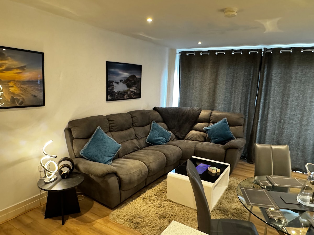 Disfruta de una experiencia superior en Belfast desde este moderno apartamento elegante y céntrico. Fácil acceso a todos los aeropuertos, transbordadores y una excelente base desde la que explorar Irlanda del Norte. A pocos pasos del centro de Belfast, del barrio del Titanic y de la catedral, además de las principales zonas comerciales. El centro comercial York Gate está a 10 minutos a pie. Fácil acceso a las carreteras principales para explorar la costa de Causway. Cocina totalmente equipada. Dos amplios dormitorios dobles, 1 en suite. Wifi rápido disponible.