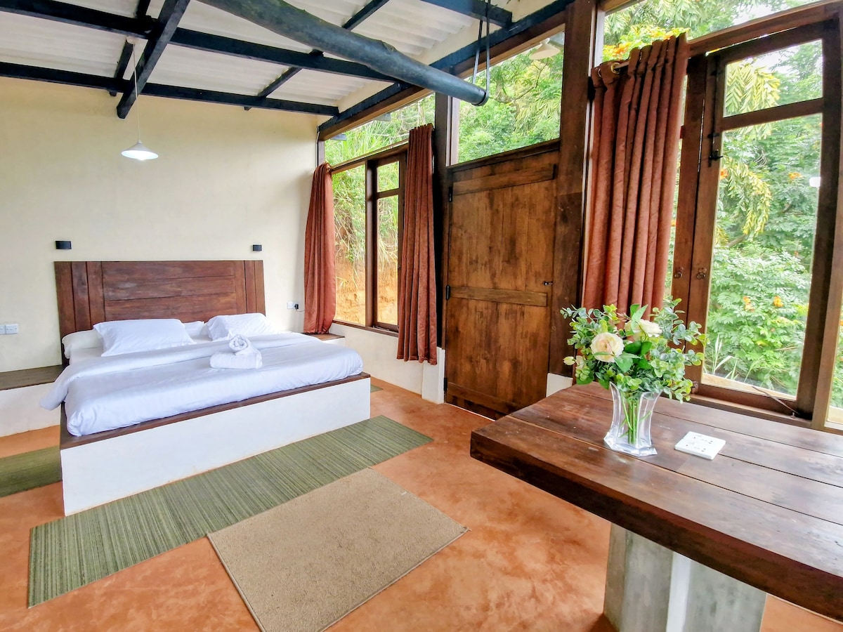 Para aquellos que están buscando una pausa, una respiración lenta y una conversación con la naturaleza. Un lugar donde el tiempo no tiene prisa y el aire tiene espacio... Donde la luz del sol baila entre las exuberantes hojas de árboles viejos y rocas inamovibles. Un exuberante brote verde sobre el paisaje sonoro serpenteante de Hirikatu oya. Encuéntrate en un espacio íntimo y sin pretensiones construido de arcilla, barro y árboles indígenas utilizando las verdaderas técnicas y habilidades tradicionales de construcción sri lankan. Un verdadero lugar de descanso para el alma.