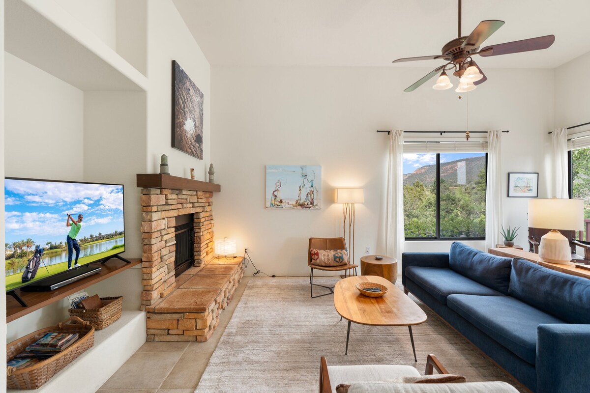 ¡Entra en esta luminosa y cómoda casa adosada de 2 dormitorios y 2 baños ubicada en uno de los mejores campos de golf de Sedona! Disfruta del café de la mañana desde la terraza privada con vistas al campo. La sala de estar, el comedor y el área de cocina de concepto abierto crean un ambiente espacioso y acogedor. Te encantarán las fantásticas comodidades, que incluyen una piscina comunitaria, bañera de hidromasaje, canchas de tenis y canchas de pickleball. Puedes llegar fácilmente a pie a Bell Rock y explorar rutas de senderismo y ciclismo cercanas.