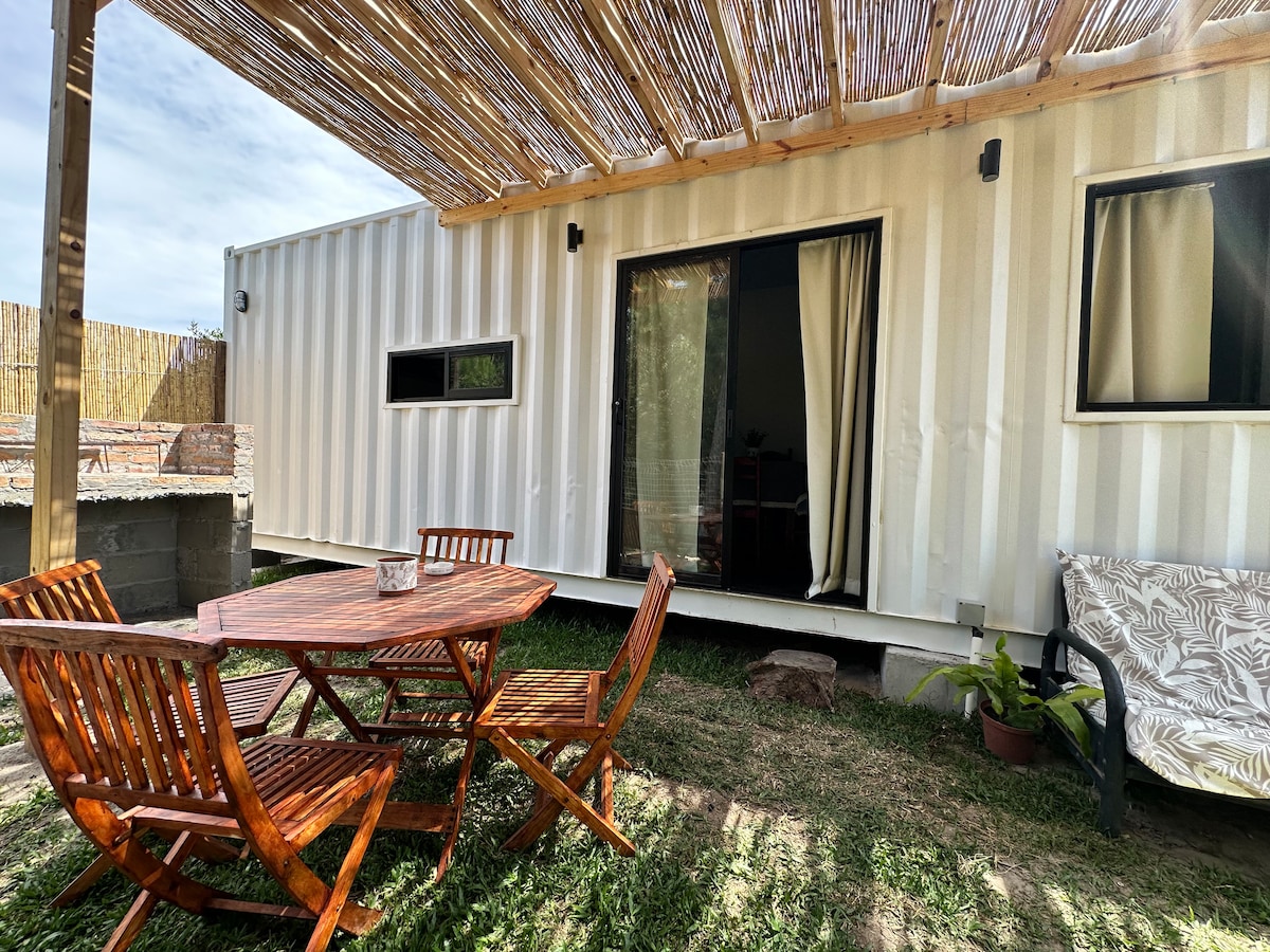 Bienvenido al acogedor apartamento contenedor, a 8 cuadras de la playa, 3 de la ruta y metros del bus 711. Tiene 1 dormitorio con cama Queen, cocina completa, 2 aires, baño con lavarropas, y un living cómodo con sillón cama y TV. Patio cerrado con estacionamiento videovigilado, hermoso jardín y aceptamos mascotas. Ubicación estratégica: playa, servicios y vida nocturna :). ¡Incluso tenemos una guitarra para vos! ¡Haremos que disfrutes de una estancia inolvidable en este hermoso rincón costero!