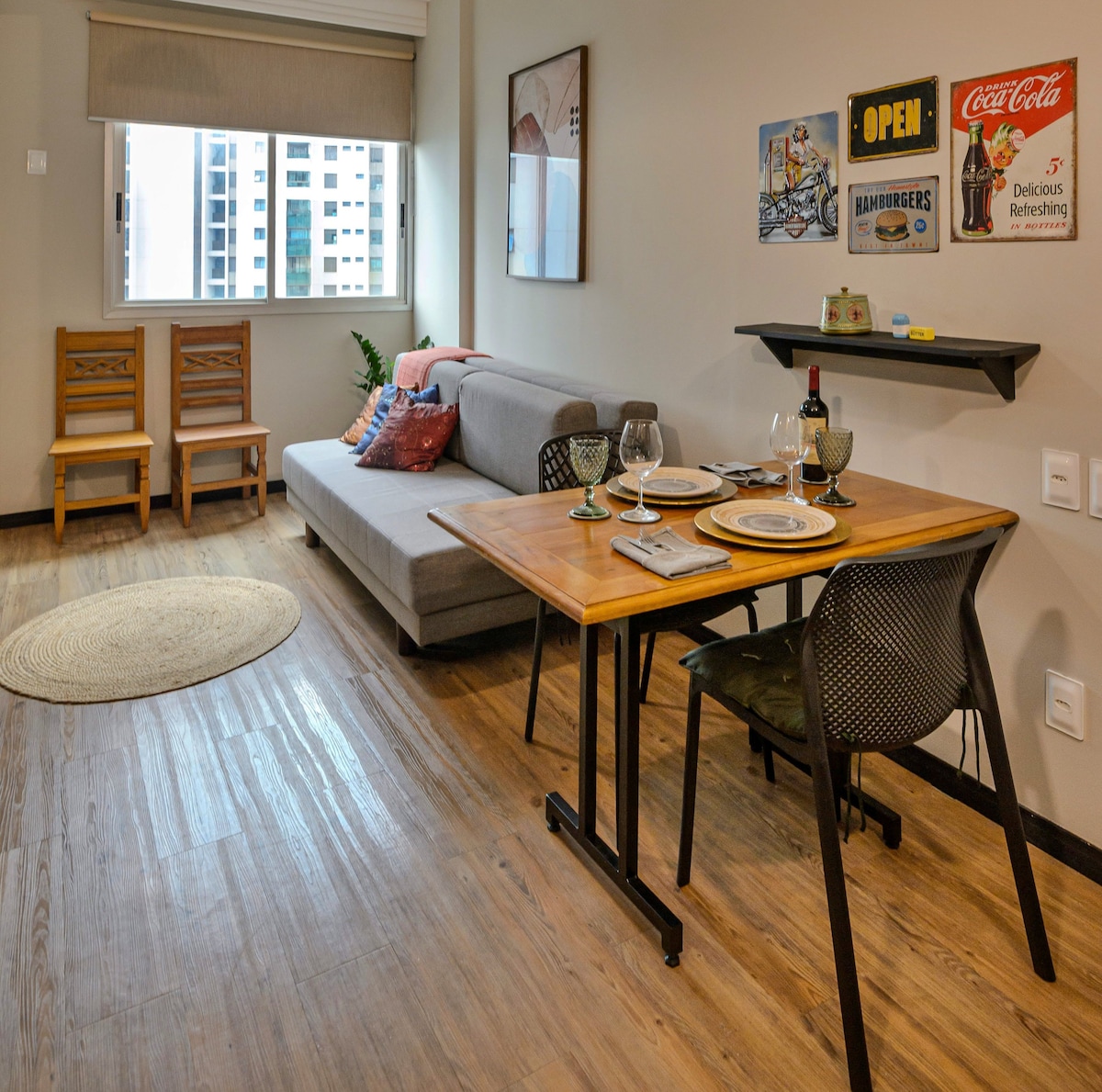 Piso de 50 m² moderno y completo. Sala de estar y cocina integrada con estufa, nevera, freidora de aire, microondas. Balcón con vista. Habitación acogedora, baño con gran ducha. Wifi, TV inteligente, aire acondicionado, estación de trabajo. ¡Espacio de garaje con valet incluido! Ubicación inmejorable: cerca de Praça da Savassi, Shopping Patio Savassi y Praça da Liberdade. Gimnasio, piscina, sauna y recepción las 24 horas. Desayuno (pagado aparte). Perfecto para el trabajo o el ocio. ¡Viva BH con comodidad y conveniencia!