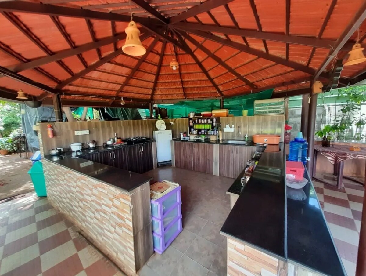 Roy Farm ofrece una estancia en una granja privada y rústica en Bangalore, ideal para grupos grandes. Rodeada de exuberante vegetación, la propiedad cuenta con piscina, teatro abierto, instalaciones de barbacoa y alojamientos cómodos para un máximo de 15 huéspedes. Los huéspedes pueden disfrutar de servicios como una cocina totalmente equipada, restaurantes al aire libre y opciones de entretenimiento, lo que garantiza un refugio tranquilo y exclusivo.