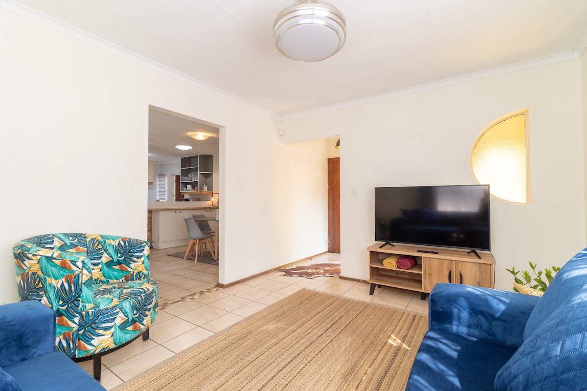 La habitación naranja forma parte de Blyde Guesthouse y se encuentra en una zona tranquila y segura de Benoni. Para que tu estancia sea cómoda, hay wifi superrápido, una cama cómoda y una ducha caliente. Está a 12 minutos del aeropuerto internacional O.R. Tambo con traslado desde y hacia el aeropuerto por una tarifa mínima. Estás a 4 minutos del acceso a la autopista que va al parque Kruger y a Johannesburgo y a 3 minutos de un centro médico, restaurantes conocidos y supermercados.