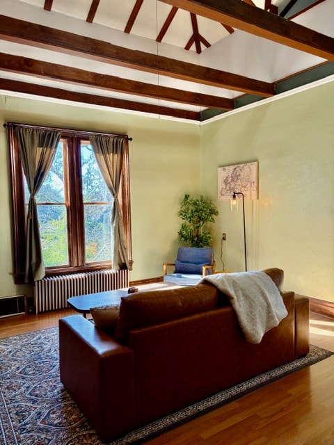 Esta es la histórica casa J. R. Bryson. El edificio histórico italiano de 1882 es ahora un edificio encantador, tranquilo, de 5 unidades perfecto para visitar profesores, estudiantes, profesionales que viajan o aquellos que quieren experimentar el encanto de Corvallis. El apartamento East es una hermosa unidad en el piso superior con ventanas que bordean el lado este del piso superior y una gran ventana orientada al sur. El espacio está completamente amueblado, un dormitorio con una cama tamaño queen y todos los servicios incluidos.