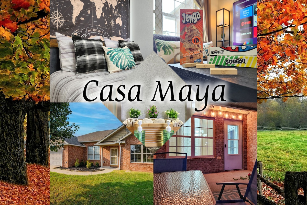 ¡Excelente ubicación! ¡A minutos de Walmart AMP y lo MEJOR de NWA! El barrio es tranquilo y seguro. Viaja con poco equipaje a un alojamiento TOTALMENTE abastecido. Gran espacio de estar de concepto abierto con toneladas de asientos, un espacio de trabajo dedicado, TV de 65 pulgadas + barra de sonido. Cocina surtida que incluye KCUP, café de goteo, chocolate caliente y té. Patio privado con fogata y parrilla. Acogedor balcón de segundo nivel directamente fuera del dormitorio principal. Baños con secadores de pelo, toallas premium y qtips. Estacionamiento en garaje y entrada para 3 vehículos. Soporte para bicicletas + lavado.