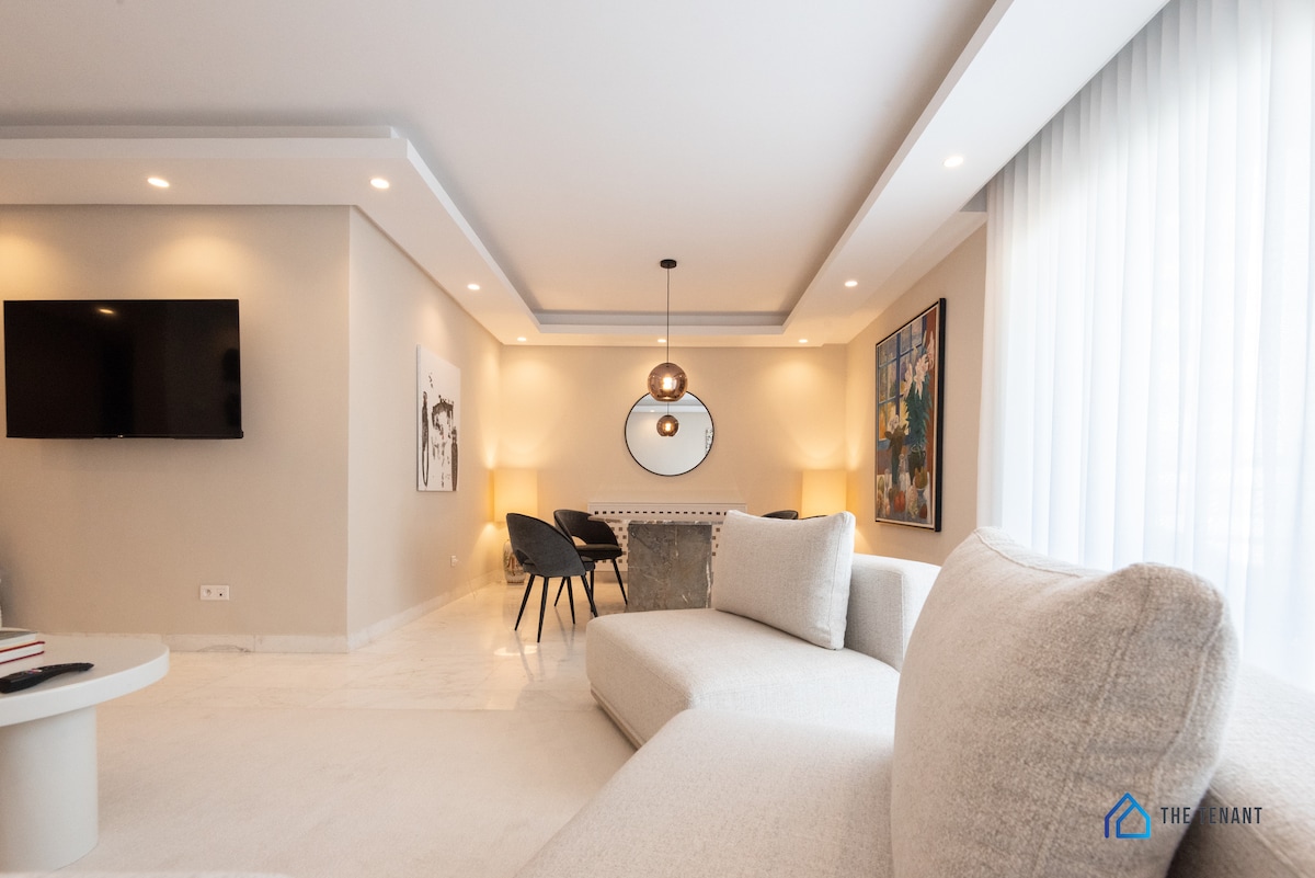 Experimenta el lujo en este elegante apartamento de un dormitorio en Lac 2, Túnez. Ubicado en un edificio tranquilo y seguro con conserje 24/7, este elegante espacio cuenta con decoración hecha a mano, suelos de mármol, un balcón soleado, TV inteligente, Wi-Fi de alta velocidad de 100 Mbps, una cocina abierta totalmente equipada y un gran sofá que se convierte en una cama. Incluye escritorio, lavadora, aire acondicionado, calefacción central y estacionamiento privado. Ideal para negocios, parejas o estancias prolongadas.